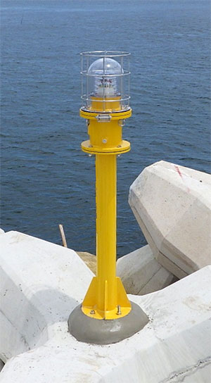 消波ブロックの突端を明示し、航行船舶の安全を図ります。