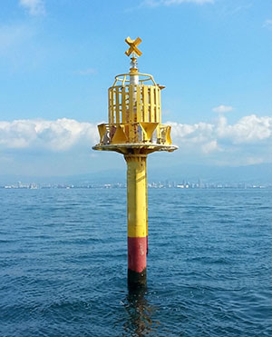 洋上の海中にある障害物を明示し、航行船舶の安全を図ります。